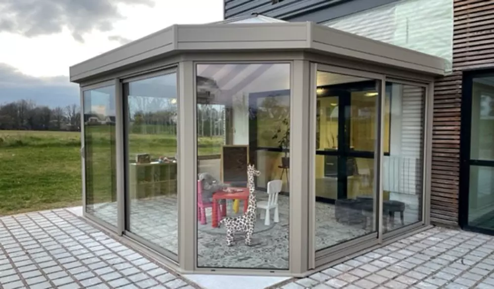 Voici un troisième modèle d'une véranda en bois et en aluminium de la gamme Équilibre.