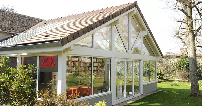 Découvrez le secret pour lutter contre la morosité et le manque d'énergie avec l'extension véranda en bois blanc lumière Rebecca !