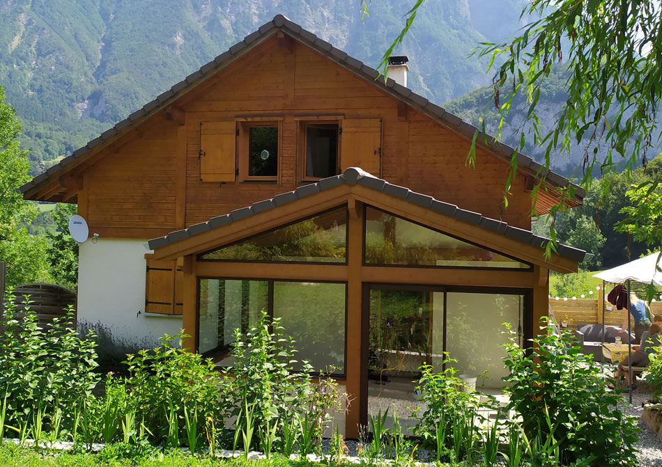 Voici une véranda bois aux allures de chalet de montagne installée à Annemasse. Un modèle parfait pour les amoureux de matières naturelles en quête d’authenticité.