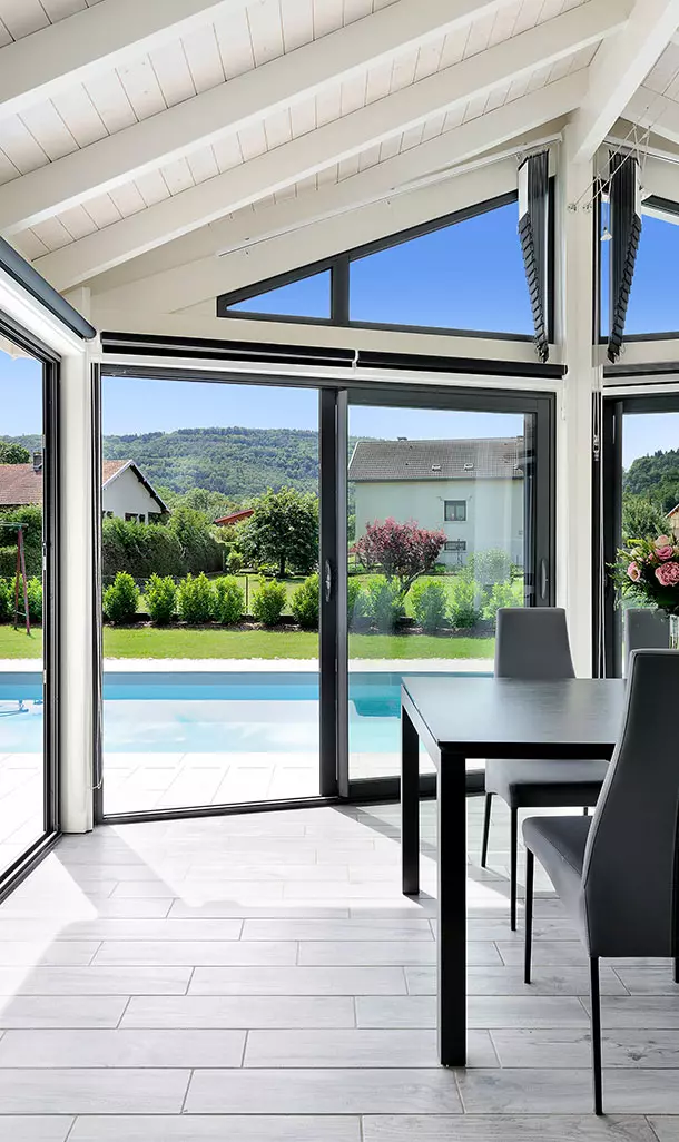 Complètement ouverte sur le jardin : c’est le parti-pris de la véranda Livia, une salle à manger d’exception pour passer encore plus de temps en famille ou entre amis.