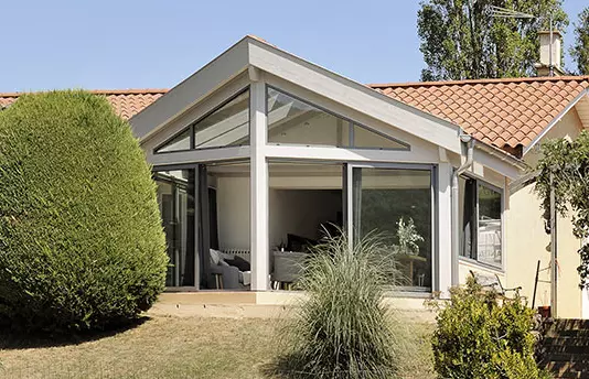 Avec 42 m2 d'espace supplémentaire, une magnifique ossature bois et des ouvertures vitrées de toutes parts, le quotidien prend une nouvelle dimension, plus confortable, chaleureuse.