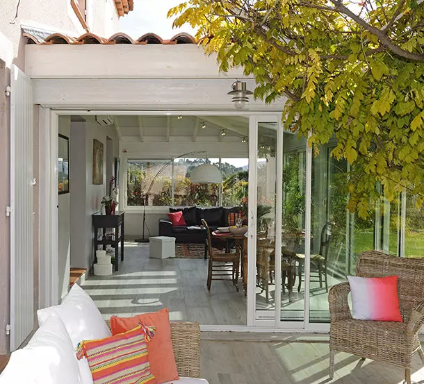 L'extension en bois Provencia joue d'ailleurs plusieurs rôles selon les saisons : en été, c'est la pièce de vie où l'on partage des repas entre amis ou en famille à l'ombre ; en automne, c'est l'endroit parfait pour déjeuner, lire et se reposer ; en hiver, elle devient un jardin d'hiver tempéré pour abriter les plantes exotiques ; et au printemps, c'est l'endroit idéal pour apprécier la floraison des différentes plantes du jardin.