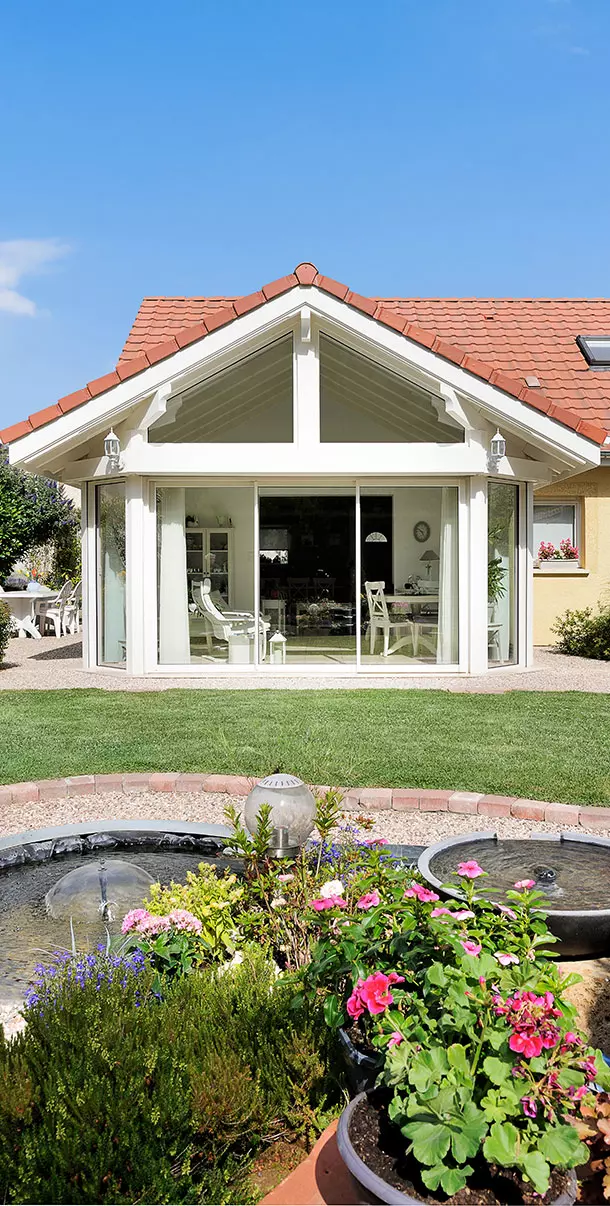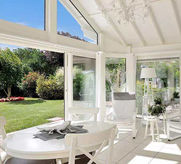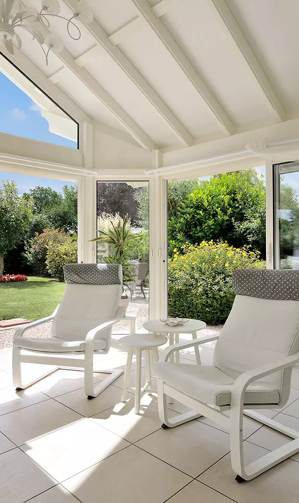 C’est ainsi que nous avons conçue Rebecca, une véranda extension bois blanc lumière aux larges ouvertures vitrées. Et si c’était ça le secret pour lutter contre la morosité et le manque d’énergie ?