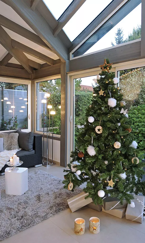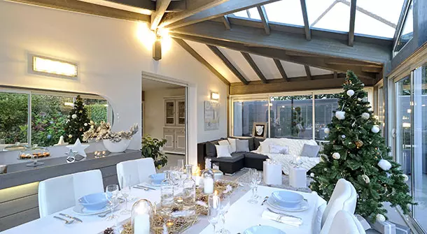 Vous rêvez d'une pièce supplémentaire pour accueillir famille et amis lors des fêtes de fin d'année ? L'extension en bois Santa l'a fait ! Avec sa belle surface de 27 m2 et sa toiture 6 pans composée d'une magnifique ouverture vitrée, vous pourrez ouvrir les cadeaux et siroter un café en admirant la neige tomber.