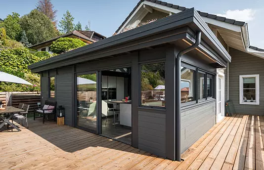 Prix calculé sur une version de base d’une surface minimum de 20 m², hors options et accessoires. Chaque étude est personnalisée et devra prendre en compte les contraintes extérieures de l’existant, l'altitude, l'orientation, l'acheminement du matériel, etc.