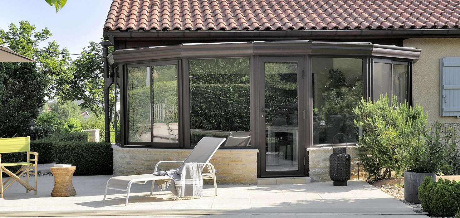 Envie d’une nouvelle pièce de vie lumineuse ? Nous avons ce qu’il vous faut ! La véranda jardin d'hiver Annie a été spécialement conçue pour vous offrir une vue imprenable sur votre jardin grâce à sa forme en éventail. Sa structure en aluminium couleur sienne apporte du charme et du caractère à votre pièce à vivre et s’intègre parfaitement au style de la maison.