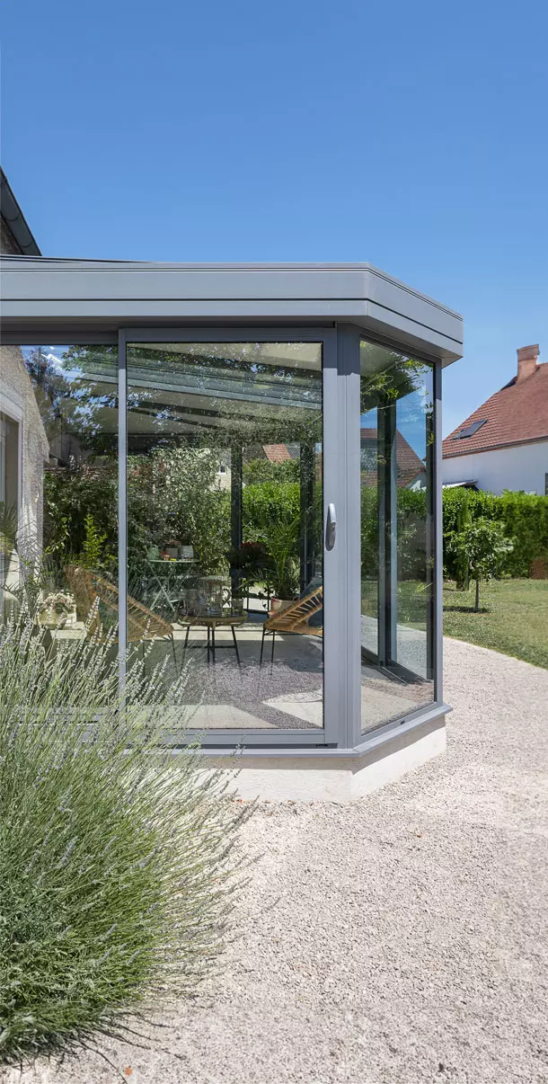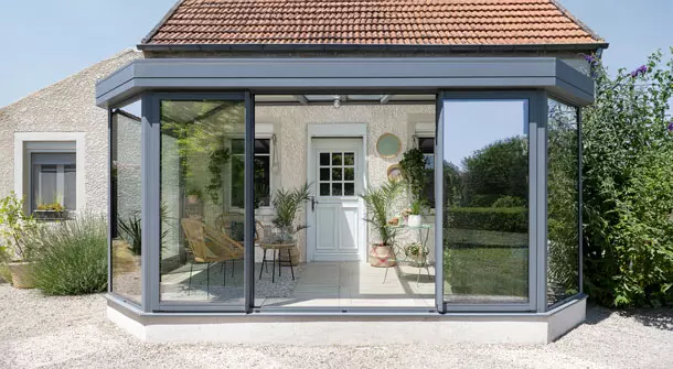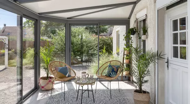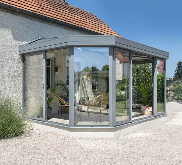 Faites la connaissance de Naomie, une véranda aluminium sur-mesure qui associe confort optimal et entretien minimal. Avec une structure fine et élégante en aluminium thermolaqué coloris gris Platine, cette véranda résiste à merveille aux caprices de la météo tout en vous épargnant les tracas d'un entretien régulier.